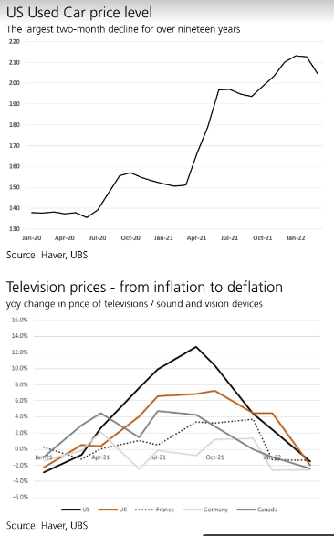 Το επόμενο τρίμηνο, σημειώνει η UBS, θα έχουμε αφήσει πλέον εντελώς τα lockdown πίσω μας και τελικά δεν υπάρχουν ενδείξεις για έναν δεύτερο γύρο ανόδου του πληθωρισμού, καθώς απουσιάζει το σπιράλ μισθολογικού κόστους/τιμών. Το ότι θα υποχωρήσει ο πληθωρισμός είναι βέβαιο, αυτό που παραμένει λιγότερο βέβαιο είναι πόσο χαμηλά θα πέσει.
