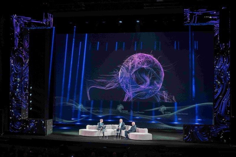 Στο πλαίσιο της ενότητας «Future Framed by», σημαντικοί εκπρόσωποι της επιχειρηματικής και θεσμικής κοινότητας μοιράστηκαν τη δική τους οπτική για το μέλλον της τεχνολογίας και της οικονομίας. Οι βιντεοσκοπημένες ομιλίες των Ευάγγελου Μυτιληναίου, Πρόεδρος και Διευθύνων Σύμβουλος της METLEN Energy & Metals, Αντώνη Παπαδημητρίου, Προέδρου του Ιδρύματος Ωνάση, Χρήστου Μεγάλου, Διευθύνοντος Συμβούλου της Τράπεζας Πειραιώς και του Γιώργου Πιτσιλή, Διοικητή της ΑΑΔΕ, αποδόθηκαν στη σκηνή ως ολογραμματικές προβολές, αξιοποιώντας μια σύγχρονη τεχνική προβολής που δημιουργεί την αίσθηση φυσικής παρουσίας χωρίς την ανάγκη φυσικής συμμετοχής.